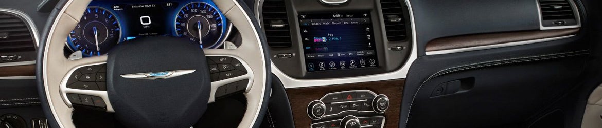 Inside the upscale cabin of the 300, you'll find premium materials and traditional craftsmanship. Touring trim features cloth upholstery, a power driving seat, a 60/40 split folding rear seat, dual-zone automatic climate control, a customizable digital driver information cluster display, a leather-wrapped steering wheel, and illuminated front cup holders.