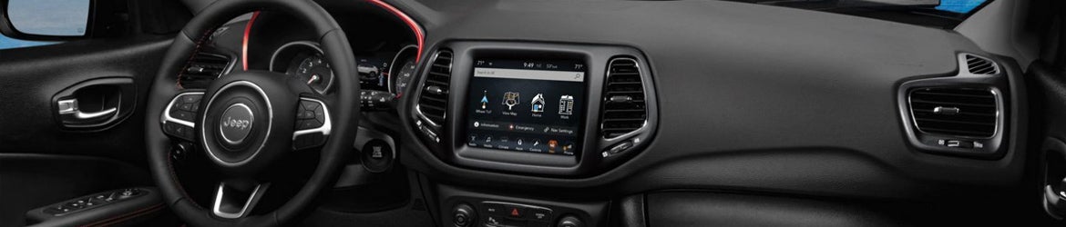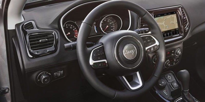Inside the 2020 Jeep Compass Sport, you'll find standard comforts and conveniences that include dual-zone automatic temperature control, push-button start, cloth seats, a six-speaker audio system, Uconnect 4 infotainment system with a 7-inch display, Bluetooth, Apple CarPlay, and Android Auto. The Latitude and Altitude models add a leather-wrapped shift knob and the option of a full sunroof with a power front and fixed rear. The Sun & Wheel trim level is the only one that includes the full sunroof as a standard feature.